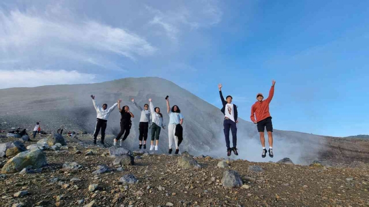 Nachdem wir einige Zeit um den Krater herum verbracht haben, beginnen wir unseren Abstieg und folgen demselben Weg zurück, auf dem wir heraufgekommen sind. Runter geht meist viel schneller und macht viel Spaß. Aber achten Sie auf rutschige Stellen, wenn der Boden nass ist.